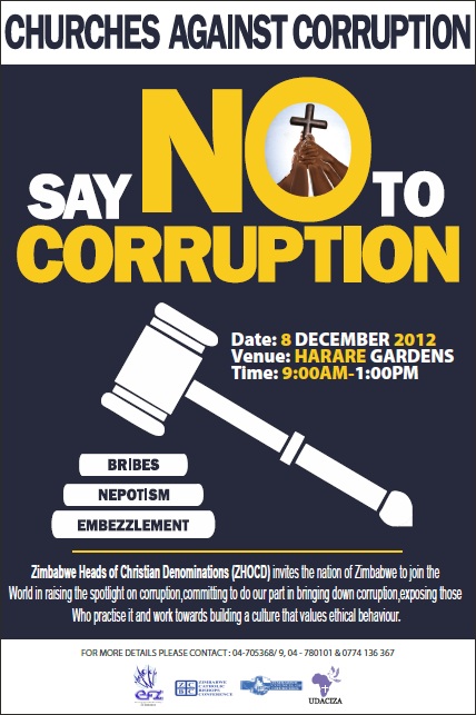 Thousands of Christians are marching on cities in Zimbabwe next week in protest against the corruption that is keeping millions in poverty. Leaders of the country's three largest Christian bodies have signed a letter urging churches to rise up against corruption during a day of action coinciding with the global Anti-Corruption Day (December 9th). The mass mobilisation is part of EXPOSED 2013, a year-long world campaign against corruption.